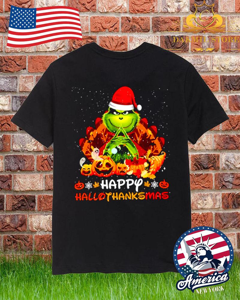 Grinch Halloween Thanksgiving Christmas Happy Hallothanksmas Shirt For Men and Women